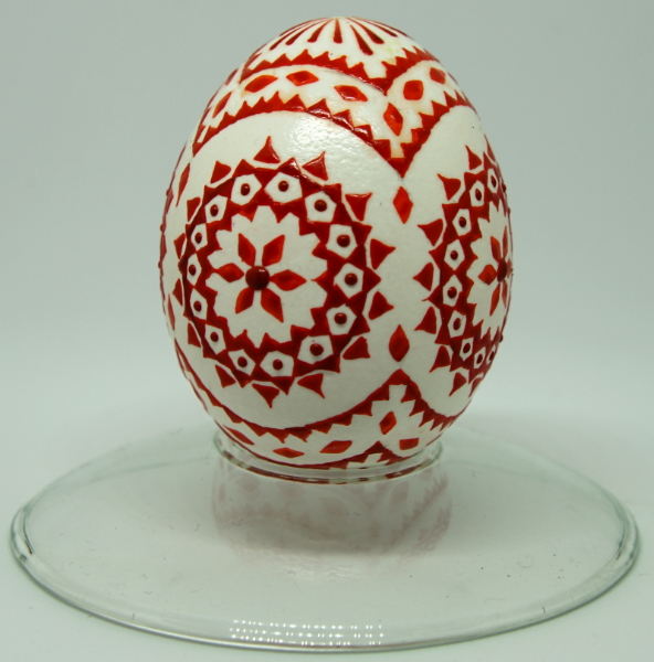 Die Ätztechnik ist aus rein praktischen Gründen nicht mehr so weit verbreitet. Denn es bedarf eines ätzenden Mittels, mit dessen Hilfe die Farbe auf dem Ei gebleicht wird. Auf diese Weise lassen sich allerdings wunderbare Ornamente erzeugen, die in ihrer Ausstrahlung einzigartig sind.