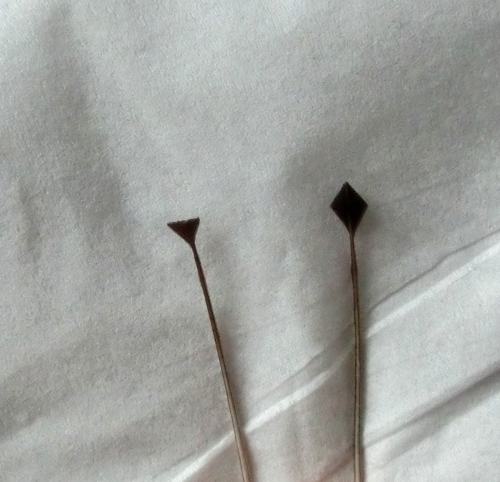Sie entfernen bis auf den Federkopf links und rechts die Federn. Dann schneiden Sie den Federkopf auf die gewünschte Dreieckgröße ab. Sie können auch andere Formen schneiden.