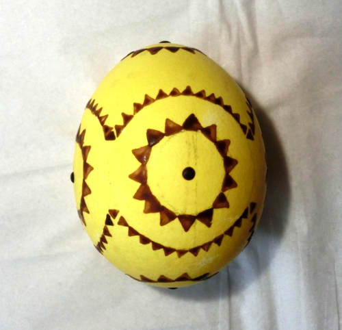 Auf dem Bild sehen sie aus unserem Beispiel das fertige Sorbische Osterei von Julius (15 Jahre).