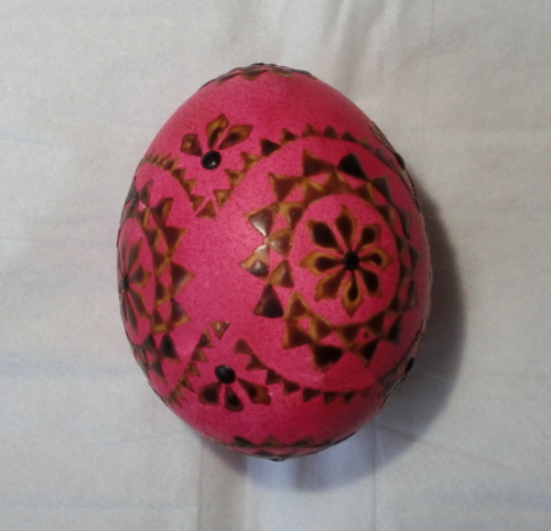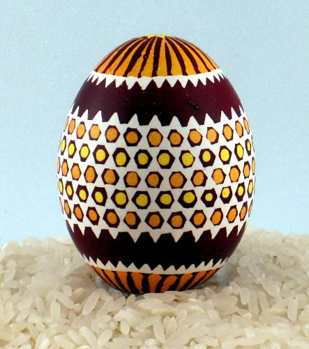 Die Wachsreservetechnik ist von den drei traditionellen Techniken die aufwändigste. Zugleich aber lassen sich mit dieser Technik mehrfarbige Eier mit bemerkenswerten Ornamenten herstellen.