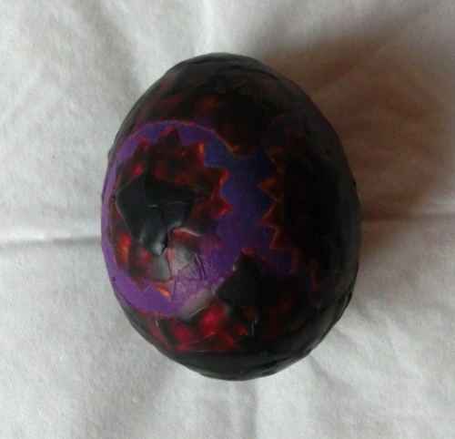 Zum Abschluss wird das Ei in der letzten Farbe gefärbt. In unserem Beispiel ist es ein dunkles Lila.